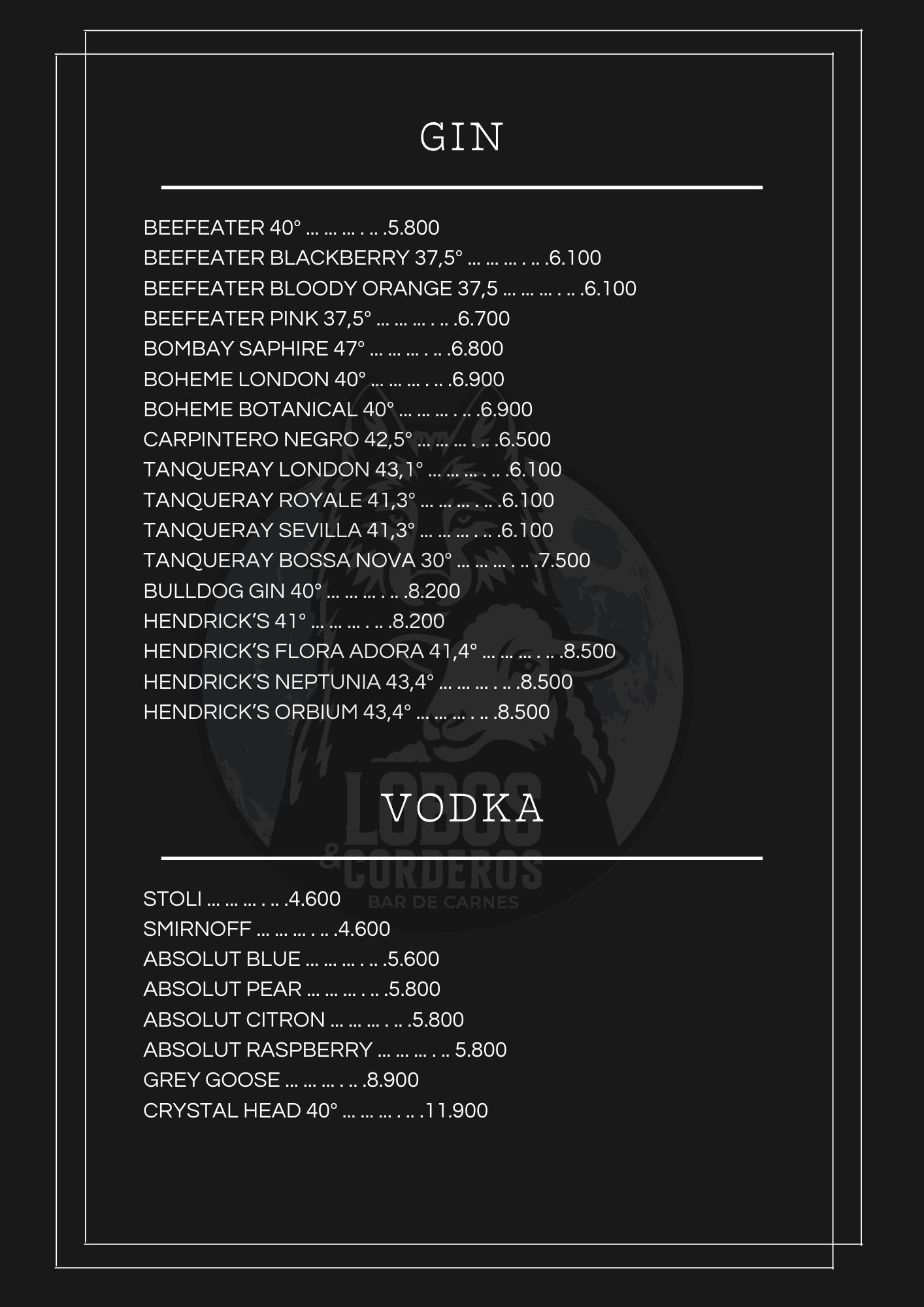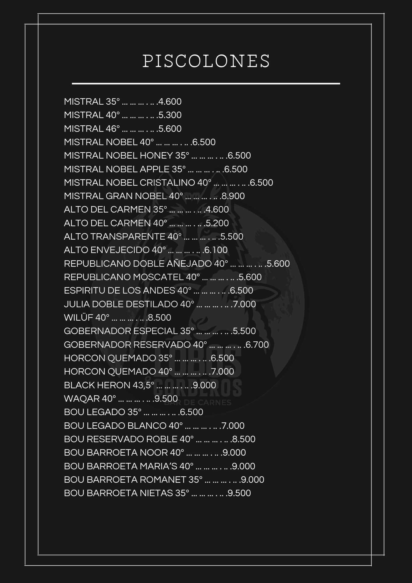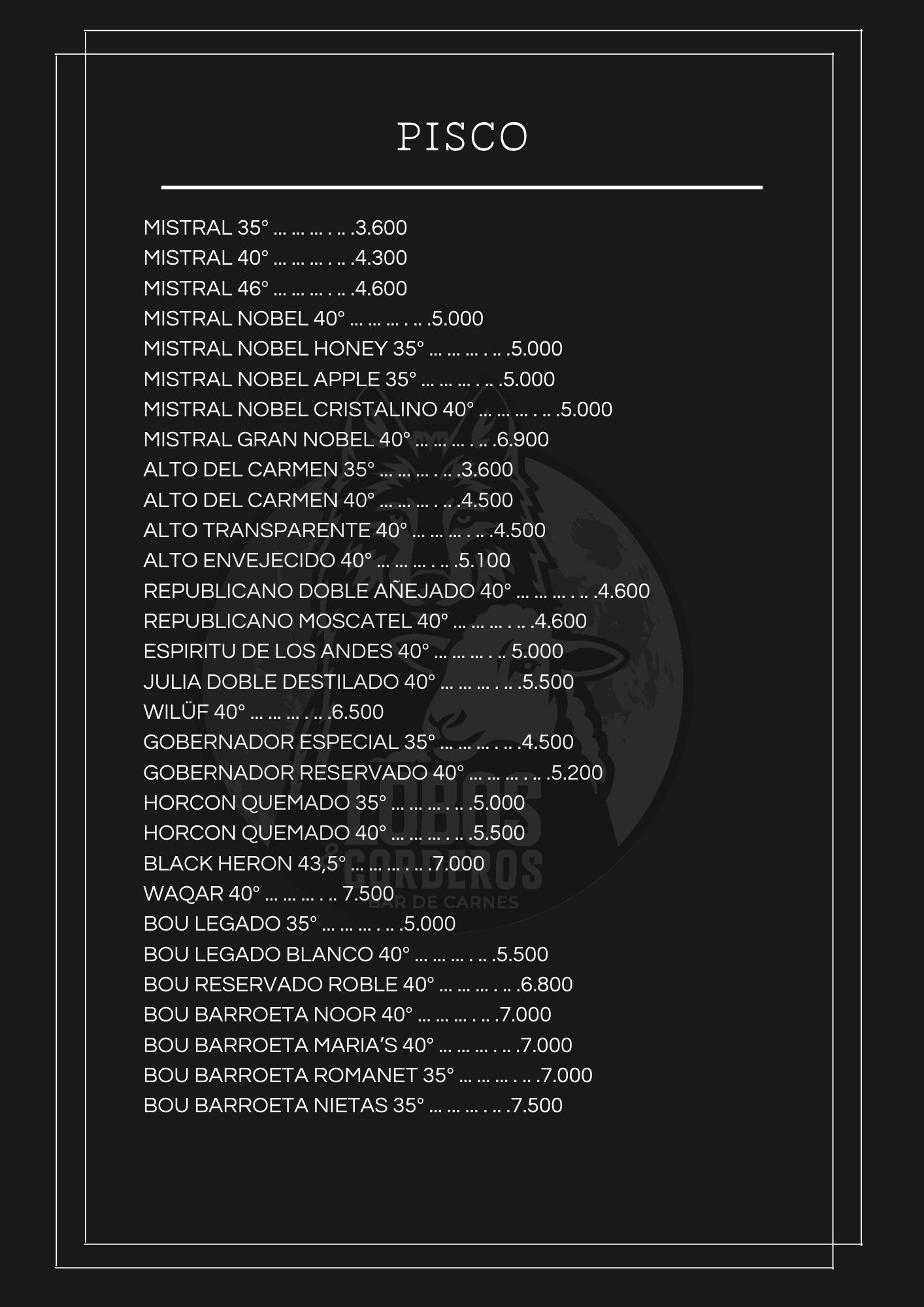 CARTA DE TRAGOS