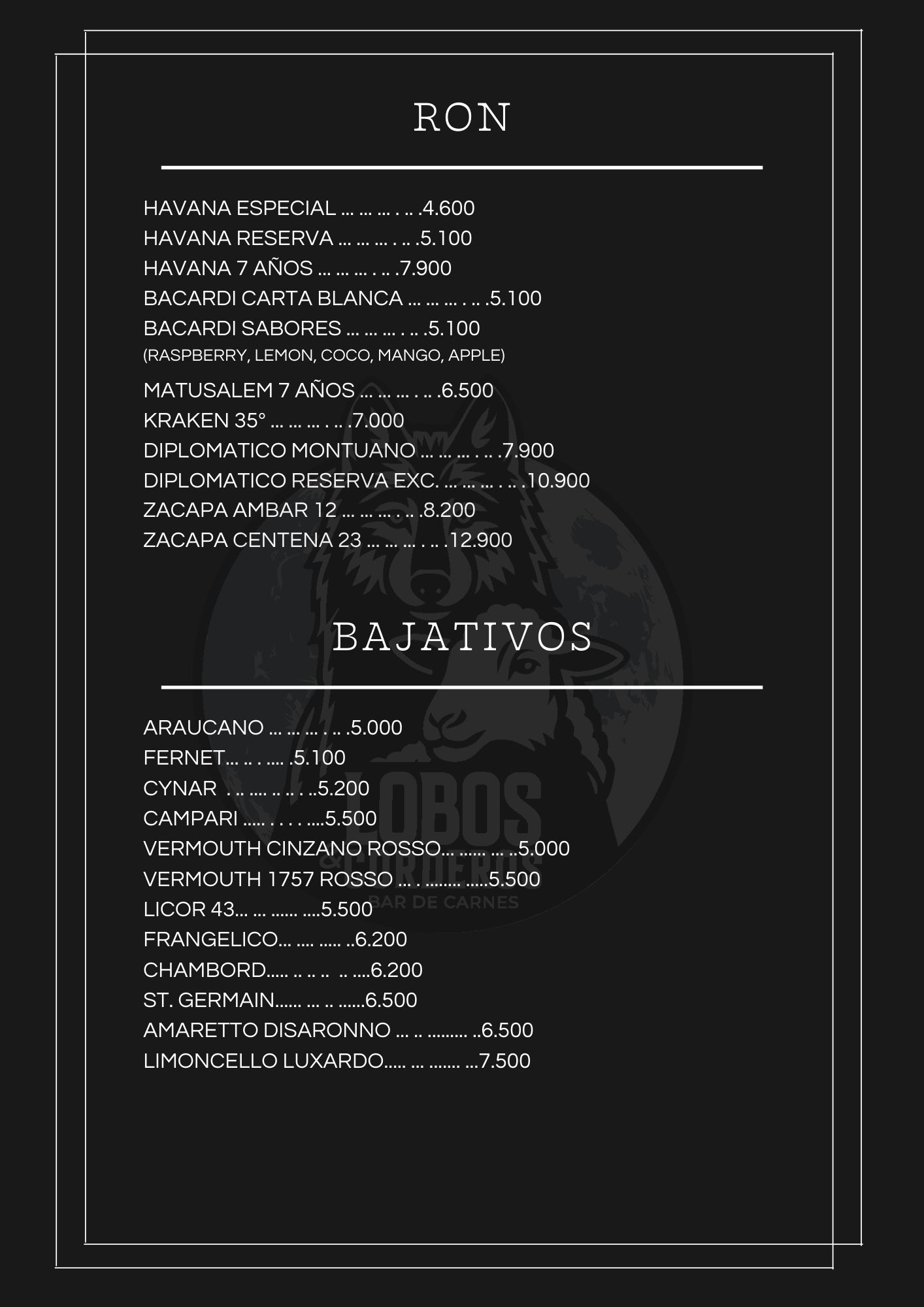 CARTA DE COMIDAS